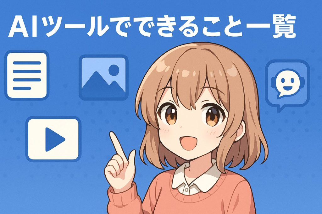 AIツールは「文章作成・画像生成・動画編集・音声認識・データ分析・翻訳や要約」といった幅広い作業を効率化できる万能なサービスです。初心者でも直感的に利用でき、スキルがなくてもプロ品質の成果物を作れるのが大きな魅力です。
